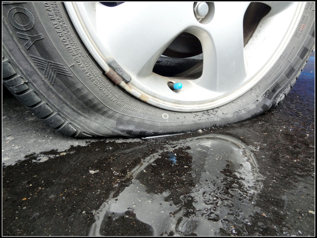 沒想到一早出門才發現我的汽車輪胎〝破輪了〞…..