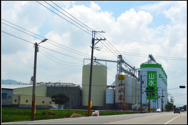 在馬路旁就可看見【山水米】的稻穀儲存筒,有機稻場就在廠房後方