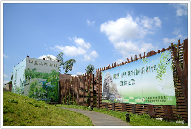 以高聳的神木及阿里山森林鐵路為主要意象,讓遊客在平地也可以感受阿里山森林的自然靈性