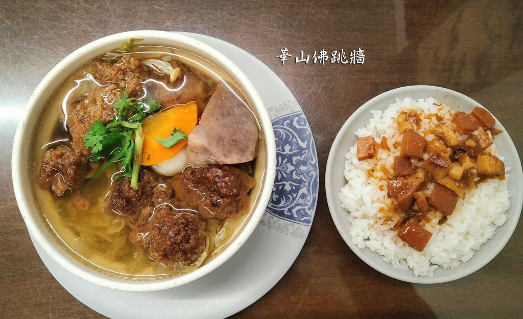 彰化美食【華山佛跳牆】料多、湯頭清甜,附的魯肉飯肥而不膩,內用還有免費紅茶可喝