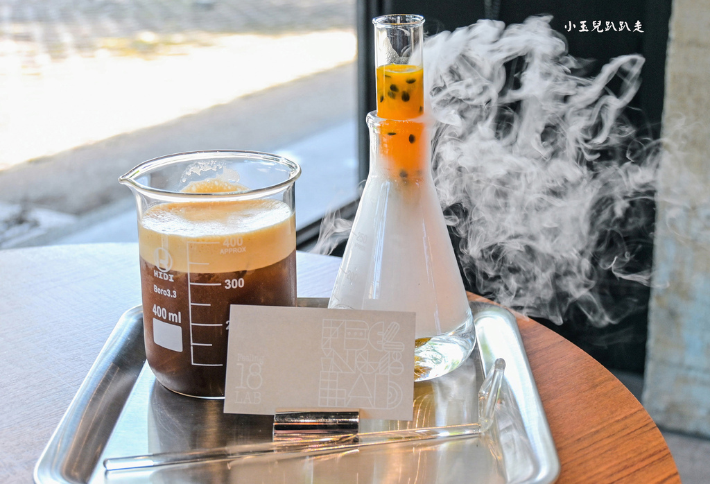▼實驗特調系列-百香美式。Feeling18 Lab實驗特調系列都會使用實驗室器皿來盛裝飲品,並且放入乾冰打造煙霧效果!而試管內的百香果是採用埔里當地大坪頂新鮮的百香果,味道非常的濃郁,搭配美式非常的好喝!推推~