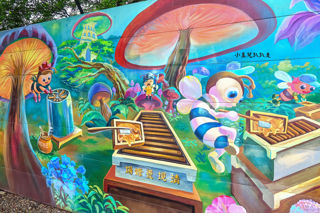 為了提供更佳的遊覽體驗,蜜蜂王國旗艦店在園區外圍的牆壁上繪製了色彩繽紛、饒富童趣的蜜蜂彩繪牆。這些生動的壁畫,不僅為冰冷的牆面注入了生命力,更成為了絕佳的拍照背景。